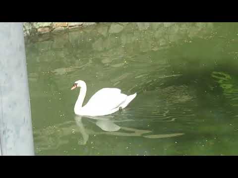 優雅に泳ぐ倉敷川のコブハクチョウ - YouTube